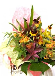 | 花材 | エピデンドラム、アンスリウム、ミニバラ、葉ラン |