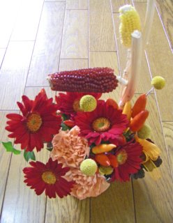 | 花材 | ピンクッション/ ほおずき(ドライ)/ イエローコーン(ドライ)/ フォックスフェイス |
