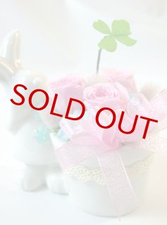 3つの、「幸福」という素敵な花言葉を持つクローバーをアレンジした、とってもHappyなアレンジです。