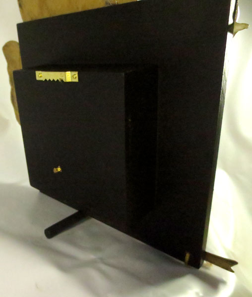 フレームの背面には、壁面に飾っていただくための金具と、御玄関や、リビングの棚などにスタンド風に置いて飾っていただける差し込み棒が入る穴があいています。