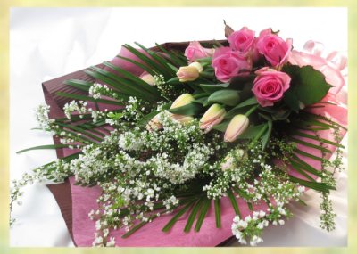 季節に合わせて春らしいチューリップや、ピンクのバラを合わせました。