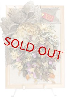 直径25cm、厚みが5cmにぎっしりと木の実が詰まったボリュームのあるリースですのでドアリースとして以外にも壁面など広めの空間に絵の様にかけていただいてもいいかも・・・