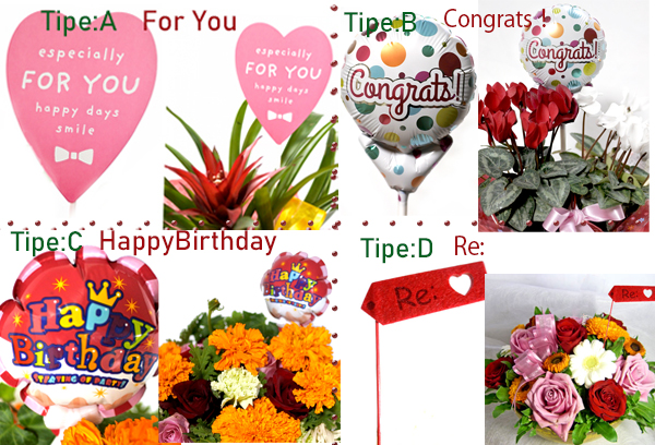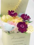 | 花材 | (プリザーブドフラワー):カーネーション(3種)/ ガーベラ/ ジニア/ ライスフラワー/ スマイラックス |