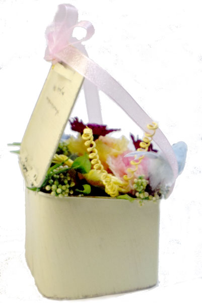 プリザーブドフラワーと青い小鳥のアレンジ・Good fortune [priza26a]