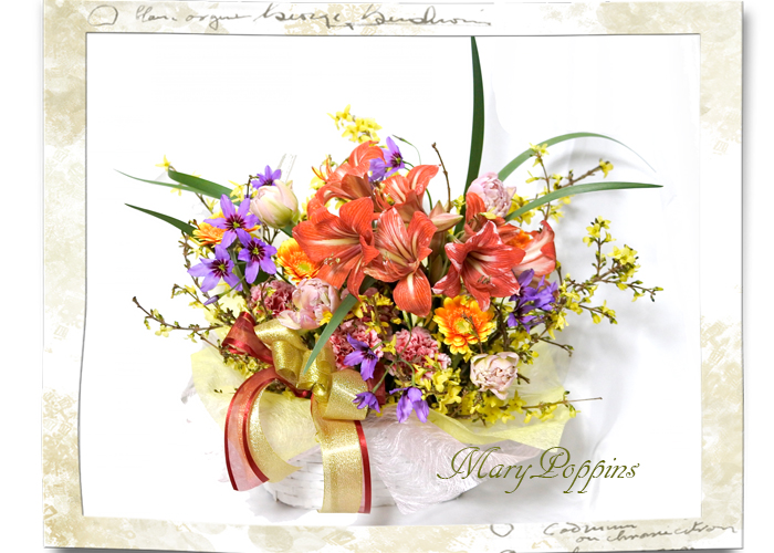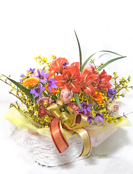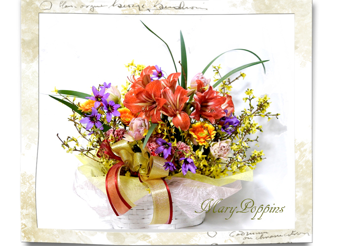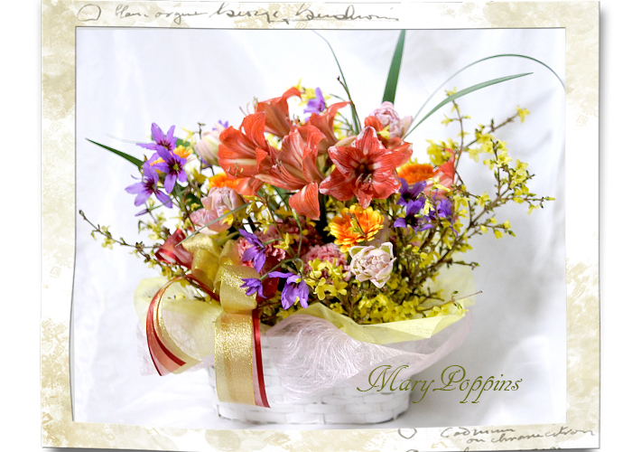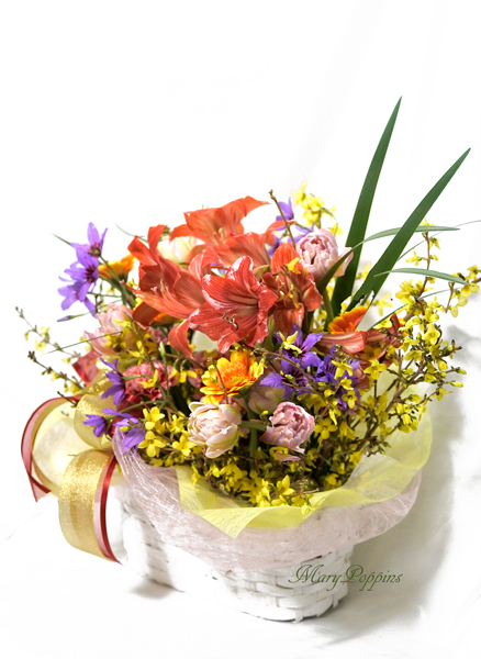 | 花材 | アマリリス/ レンギョウ/ チューリップ/ ガーベラ/ リューココリーネ/ カーネーション/ その他葉もの |